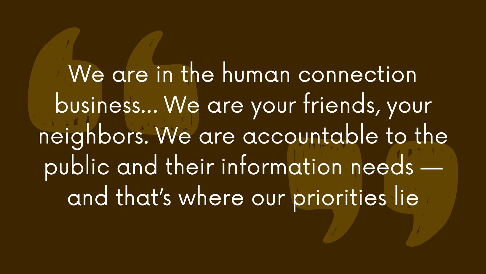 It starts with connection. Pew Research found that over 80 percent of Americans have never met a journalist. That distance erodes trust. So we go into the community. We meet people where they are. In person, at events, conversations, listening sessions. We show up not as distant observers, but as neighbors.