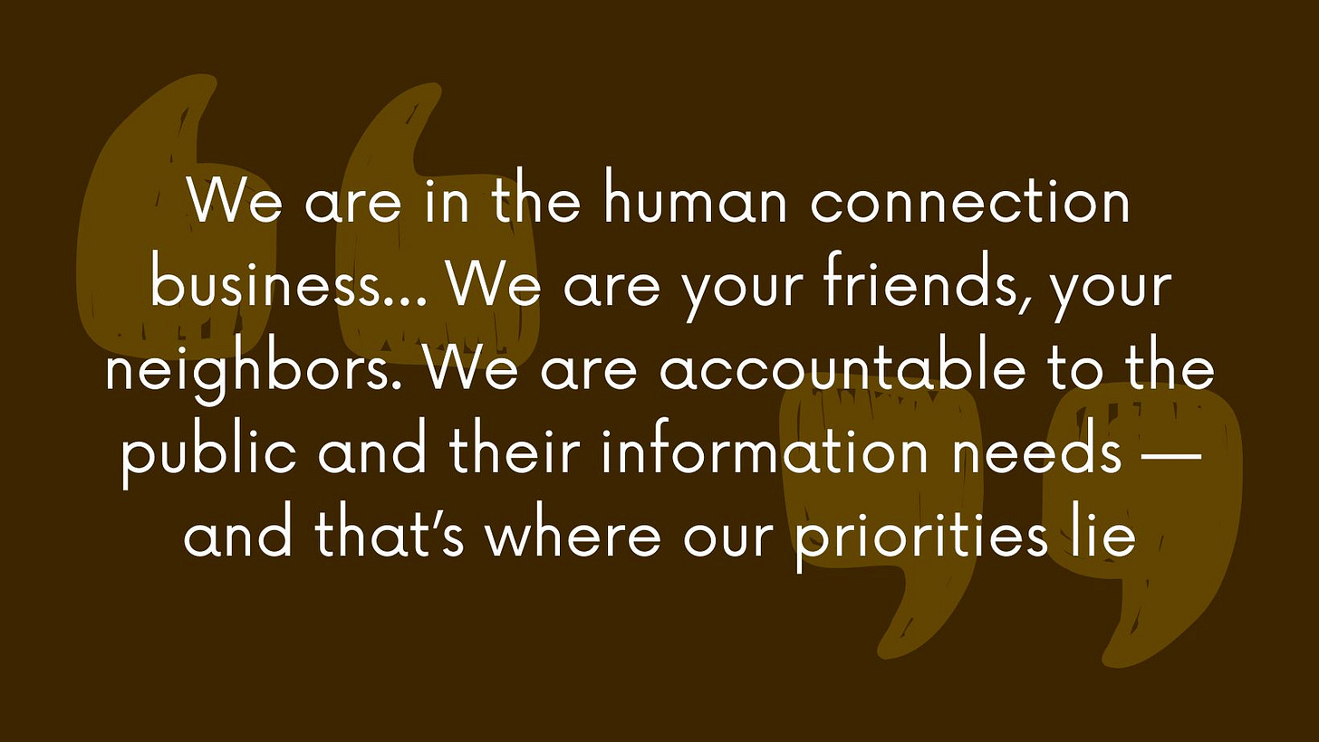 Journalism fundamentals such as ethics, integrity, a commitment to telling important stories are constants no matter the newsroom size. Whether you’re in a small town or a global network, you’re accountable to the public. The scale, like the resources or audience size, may change, but the essence of what makes journalism meaningful stays the same.
